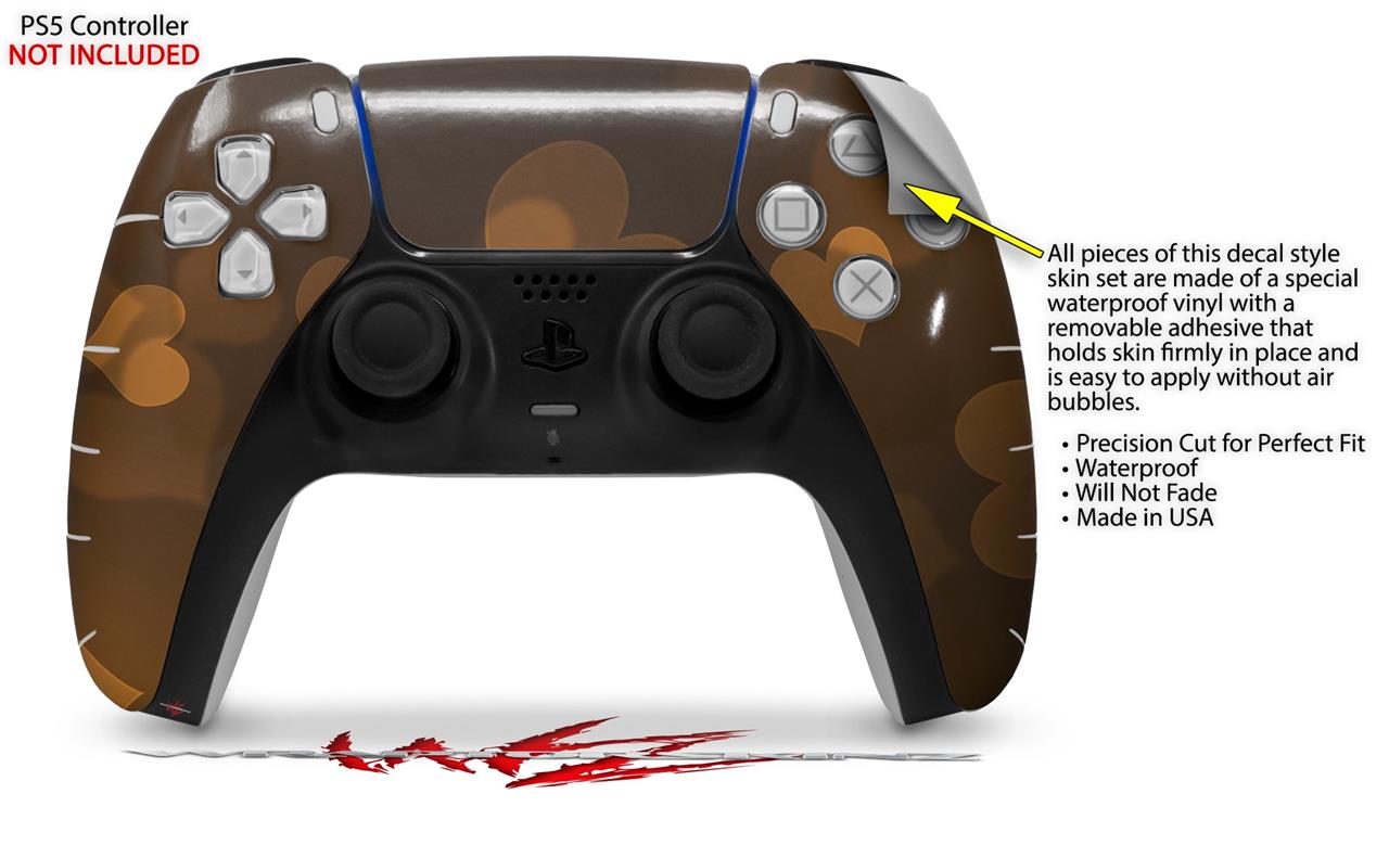 WraptorSkinz Skin Wrap compatible with the Sony PS5 DualSense Controller Bokeh Hearts Orange (CONTROLLER NOT INCLUDED)