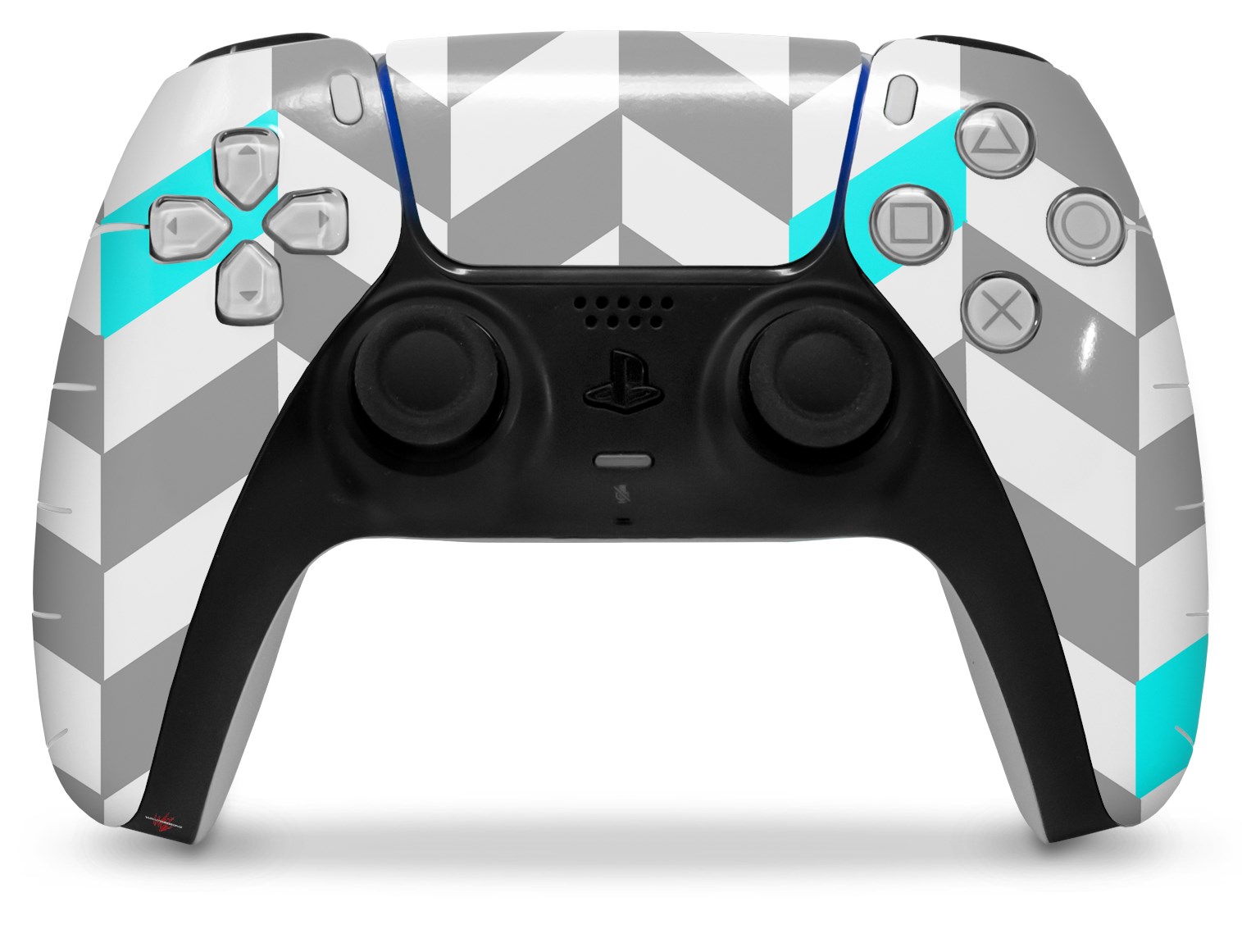 WraptorSkinz Skin Wrap compatible with the Sony PS5 DualSense Controller Chevrons Gray And Aqua (CONTROLLER NOT INCLUDED)