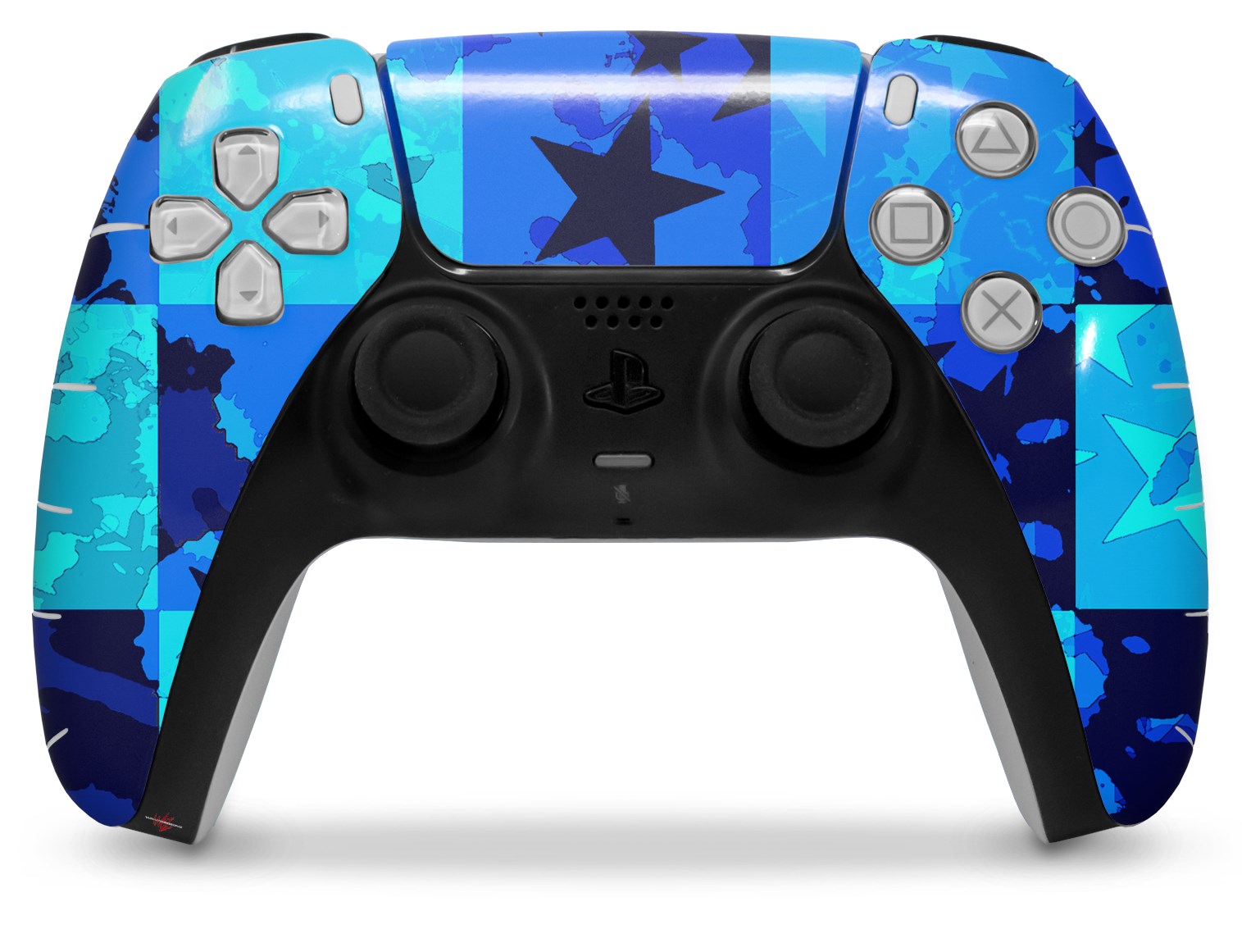 WraptorSkinz Skin Wrap compatible with the Sony PS5 DualSense Controller Blue Star Checkers (CONTROLLER NOT INCLUDED)
