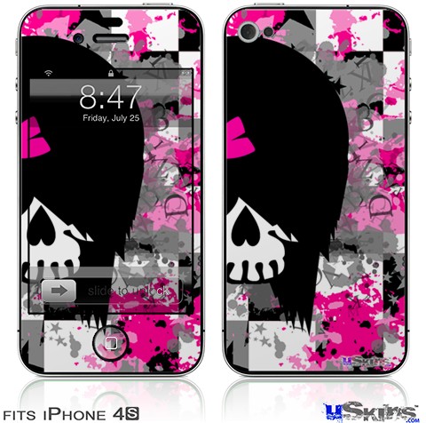 iPhone 4S Decal Style Vinyl Skin - Scene Girl Skull