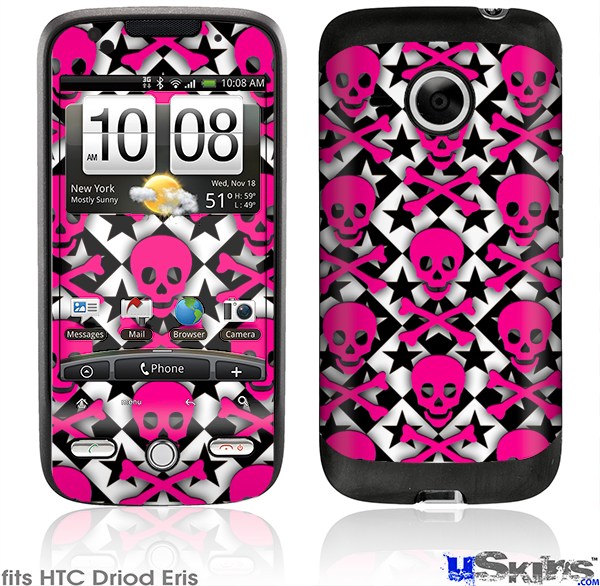 HTC Droid Eris Skin - Pink Skulls and Stars