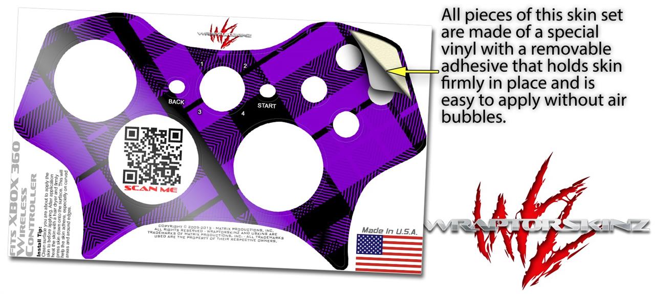 XBOX 360 Wireless Controller Decal Style Skin - Purple Plaid (CONTROLLER NOT INCLUDED)
