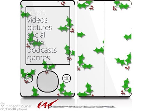 Holly Leaves on White - Decal Style skin fits Zune 80/120GB (ZUNE SOLD SEPARATELY)