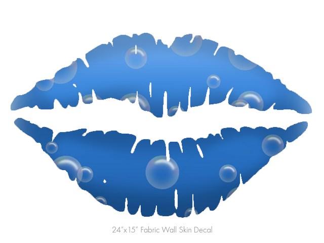 Bubbles Blue - Kissing Lips Fabric Wall Skin Decal measures 24x15 inches