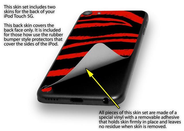 Zebra Red Decal Style Vinyl Skin - fits Apple iPod Touch 5G (IPOD NOT INCLUDED)
