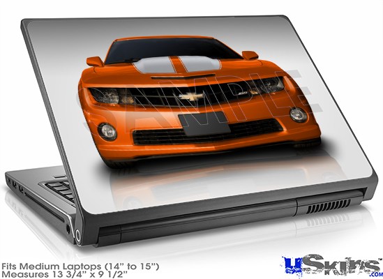 Laptop Skin (Medium) - 2010 Chevy Camaro Orange - White Stripes