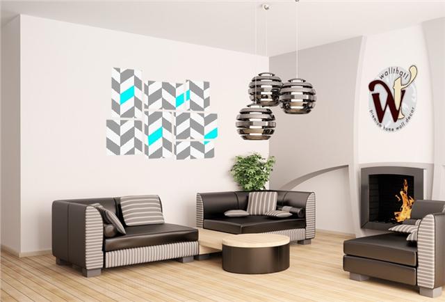 Chevrons Gray And Aqua - 7 Piece Fabric Peel and Stick Wall Skin Art (50x38 inches)
