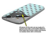 uSkins™ are self adhering vinyl skins that help prevent scratches and look great doing it. Unlike bulky silicon, plastic or metal cases and faceplates, uSkins are designed to be thin and very tough. uSkins are a composite of two layers of commercial grade materials. The bottom layer is a soft, flexible vinyl with a special removable adhesive that is easily positioned, applied without air bubbles, and effortlessly removed without leaving a sticky residue. Next we print the bottom layer with UV protected, fade resistant inks that deliver superb photo quality designs in vibrant colors. Finally we bond a professional grade laminate over the entire skin adding a glossy protective finish.