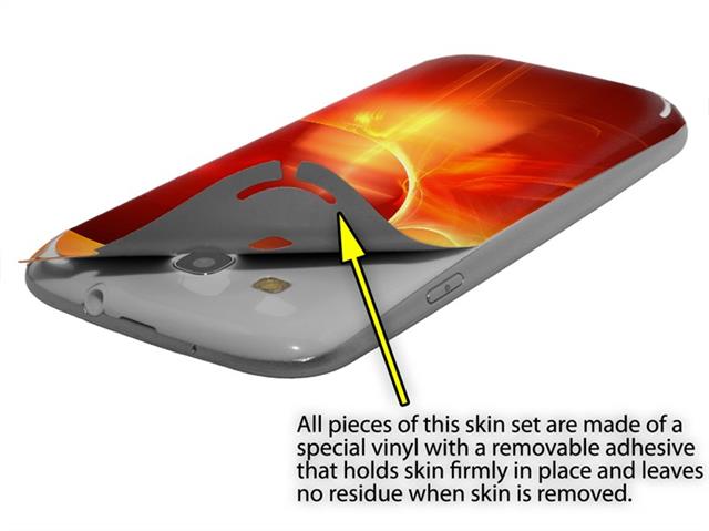 • Decal style vinyl skin covers front and back of Samsung Galaxy S III S3 phone.