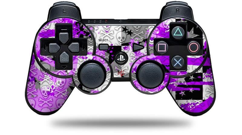 Sony PS3 Controller Decal Style Skin - Purple Checker Skull Splatter (CONTROLLER NOT INCLUDED)