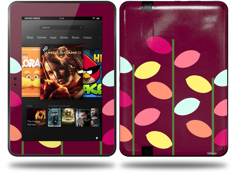 Plain Leaves On Burgundy Decal Style Skin fits Amazon Kindle Fire HD 8.9 inch