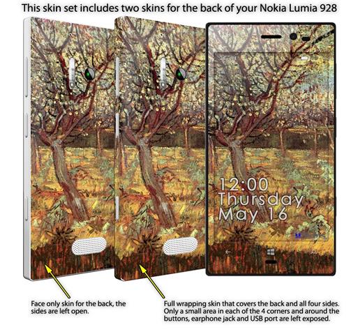 • Decal style vinyl skin covers front, back and side of Nokia Lumia 928 phone.