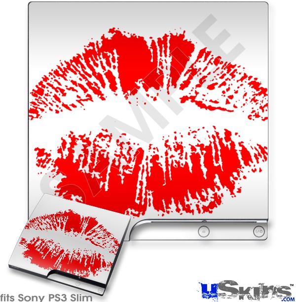Decal Skin compatible with Sony PS3 Slim Big Kiss Red on White