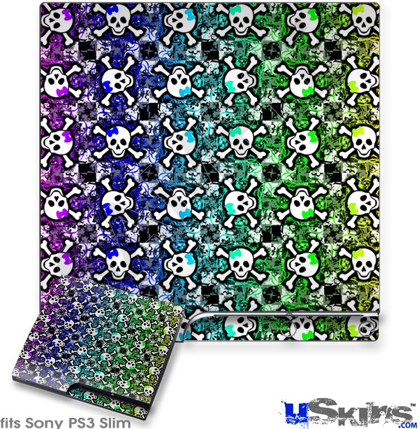 Decal Skin compatible with Sony PS3 Slim Splatter Girly Skull Rainbow