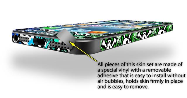 uSkins™ are self adhering vinyl skins that help prevent scratches and look great doing it. Unlike bulky silicon, plastic or metal cases and faceplates, uSkins are designed to be thin and very tough. uSkins are a composite of two layers of commercial grade materials. The bottom layer is a soft, flexible vinyl with a special removable adhesive that is easily positioned, applied without air bubbles, and effortlessly removed without leaving a sticky residue. Next we print the bottom layer with UV protected, fade resistant inks that deliver superb photo quality designs in vibrant colors. Finally we bond a professional grade laminate over the entire skin adding a glossy protective finish.