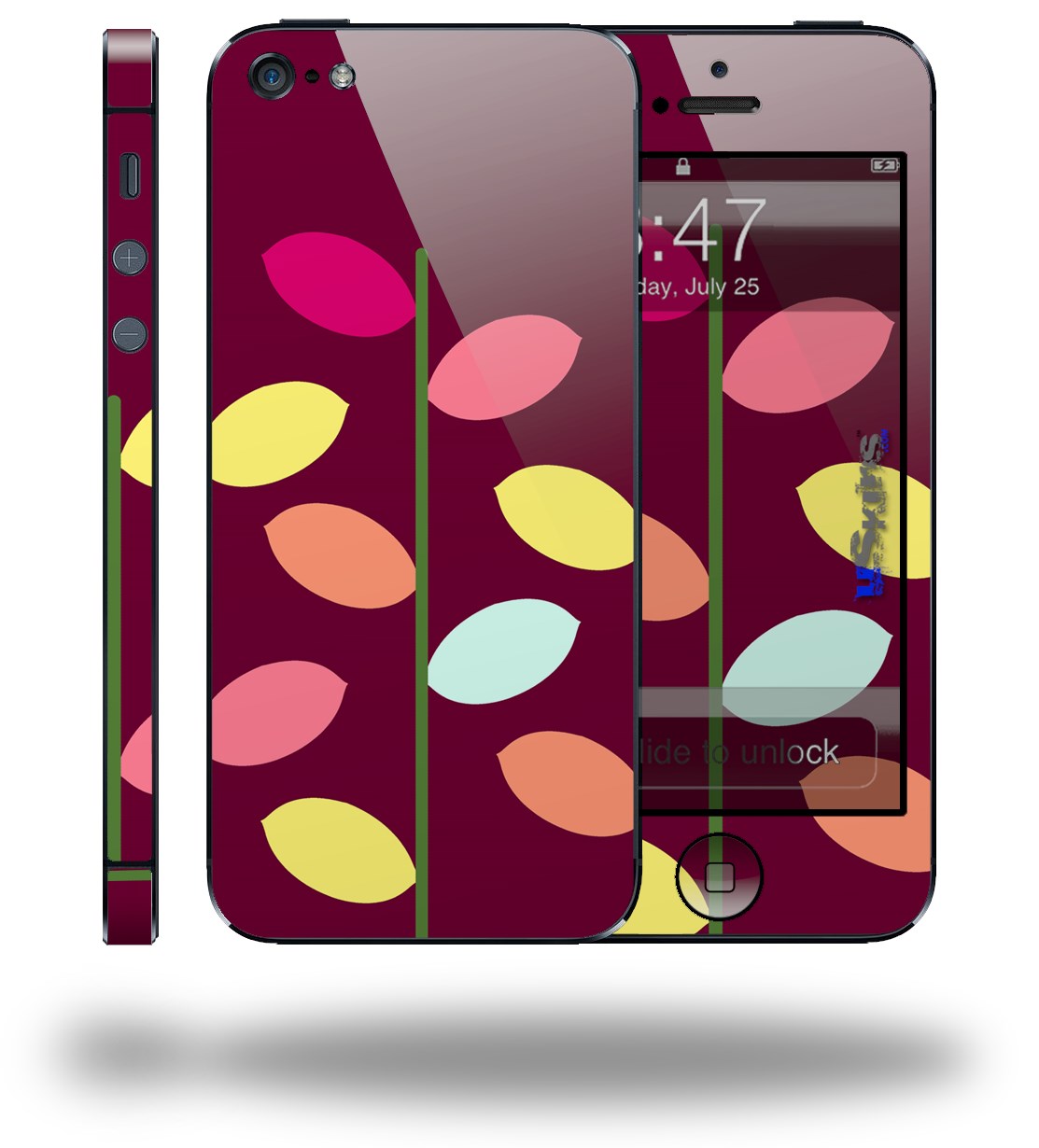 Plain Leaves On Burgundy - Decal Style Vinyl Skin (fits Apple Original iPhone 5, NOT the iPhone 5C or 5S)