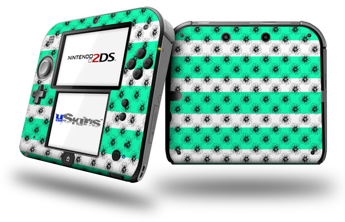 Kearas Daisies Stripe Sea Foam - Decal Style Vinyl Skin fits Nintendo 2DS - 2DS NOT INCLUDED