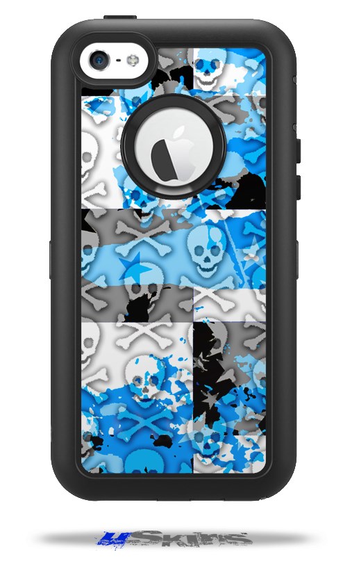 Checker Skull Splatter Blue - Decal Style Vinyl Skin fits Otterbox Defender iPhone 5C Case (CASE SOLD SEPARATELY)