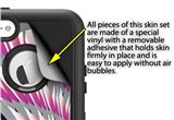 uSkins™ are self adhering vinyl decal style skins and are a great way to add a new look to your existing protective case. uSkins are a composite of two layers of commercial grade materials. The bottom layer is a soft, flexible vinyl with a special removable adhesive that is easily positioned, applied without air bubbles. Next we print the bottom layer with UV protected, fade resistant inks that deliver superb photo quality designs in vibrant colors. Finally we bond a professional grade laminate over the entire skin adding a glossy protective finish.