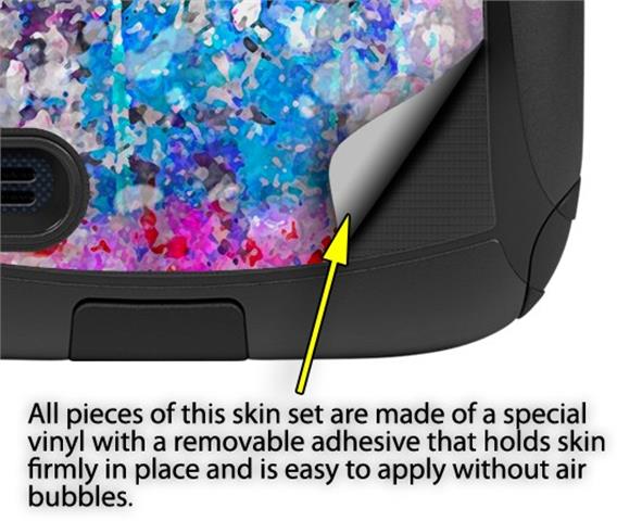 uSkins™ are self adhering vinyl decal style skins and are a great way to add a new look to your protective case. uSkins are a composite of two layers of commercial grade materials. The bottom layer is a soft, flexible vinyl with a special removable adhesive that is easily positioned, applied without air bubbles. Next we print the bottom layer with UV protected, fade resistant inks that deliver superb photo quality designs in vibrant colors. Finally we bond a professional grade laminate over the entire skin adding a glossy protective finish.