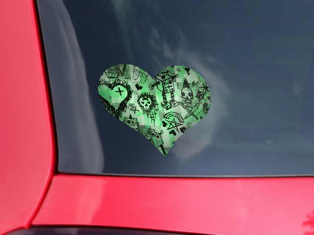 Scene Kid Sketches Green - I Heart Love Car Window Decal 6.5 x 5.5 inches