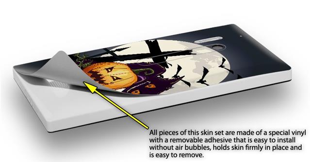 • Decal style vinyl skin covers front, back and side of Nokia Lumia 928 phone.