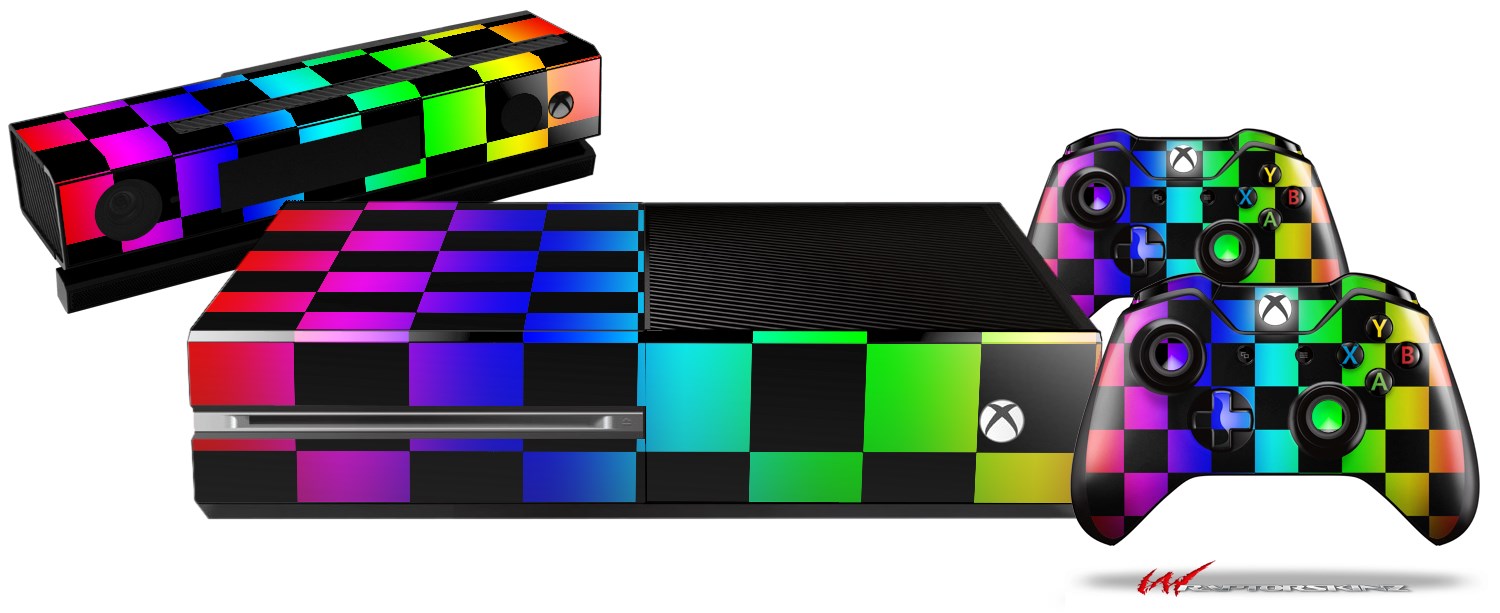 Rainbow Checkerboard - Holiday Bundle Decal Style Skin fits XBOX One Console Original, Kinect and 2 Controllers (XBOX SYSTEM NOT INCLUDED)