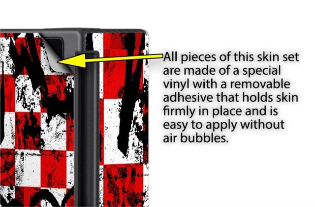 WraptoSkinz™ skins are superb photo quality designs and vibrant colors printed with special Eco-Friendly, fade resistant inks. Our skins are self-adhering flexible vinyl skins that helps prevent scratches. Made of composite, multi-layered commercial grade materials. The bottom layer is made with a special removable adhesive that is easily positioned and applied without air bubbles. We print your design on the bottom layer then bond a professional grade laminate over the entire skin adding a glossy protective finish.