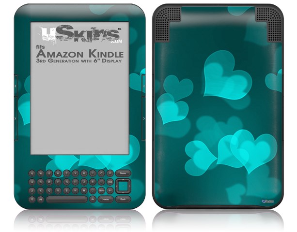 Bokeh Hearts Neon Teal - Decal Style Skin fits Amazon Kindle 3 Keyboard (with 6 inch display)
