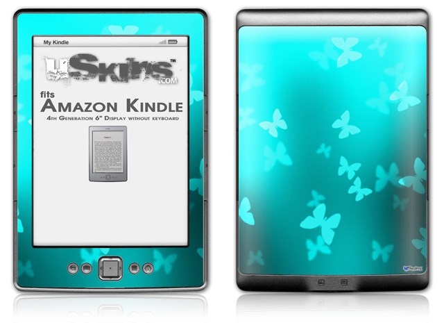 Bokeh Butterflies Neon Teal - Decal Style Skin (fits 4th Gen Kindle with 6inch display and no keyboard)