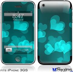iPhone 3GS Skin - Bokeh Hearts Neon Teal