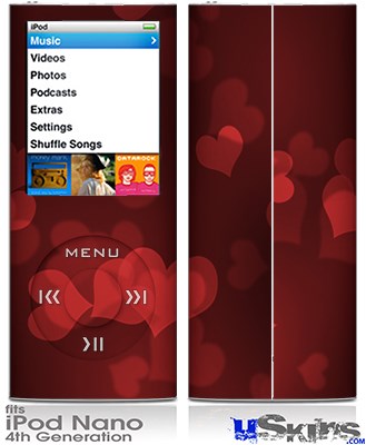 iPod Nano 4G Skin - Bokeh Hearts Red