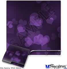 Decal Skin compatible with Sony PS3 Slim Bokeh Hearts Purple