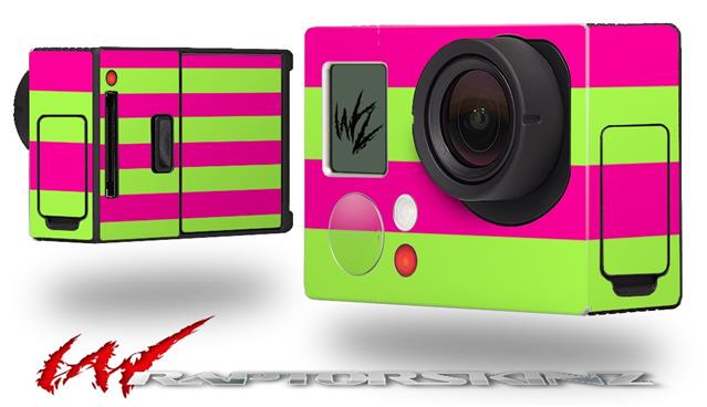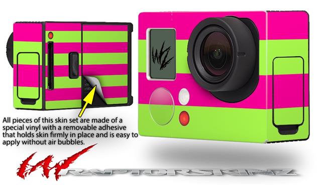Psycho Stripes Neon Green and Hot Pink - Decal Style Skin fits GoPro Hero 3+ Camera (GOPRO NOT INCLUDED)