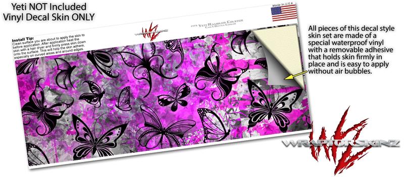 Skin Decal Wrap for Yeti Colster, Ozark Trail and RTIC Can Coolers - Butterfly Graffiti (COOLER NOT INCLUDED)