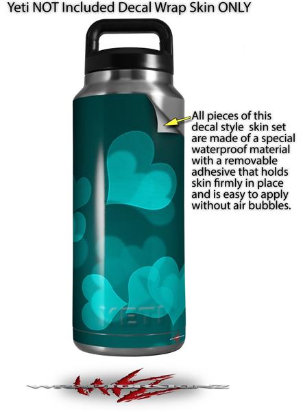 WraptorSkinz Skin Decal Wrap for Yeti Rambler Bottle 36oz Bokeh Hearts Neon Teal (YETI NOT INCLUDED)