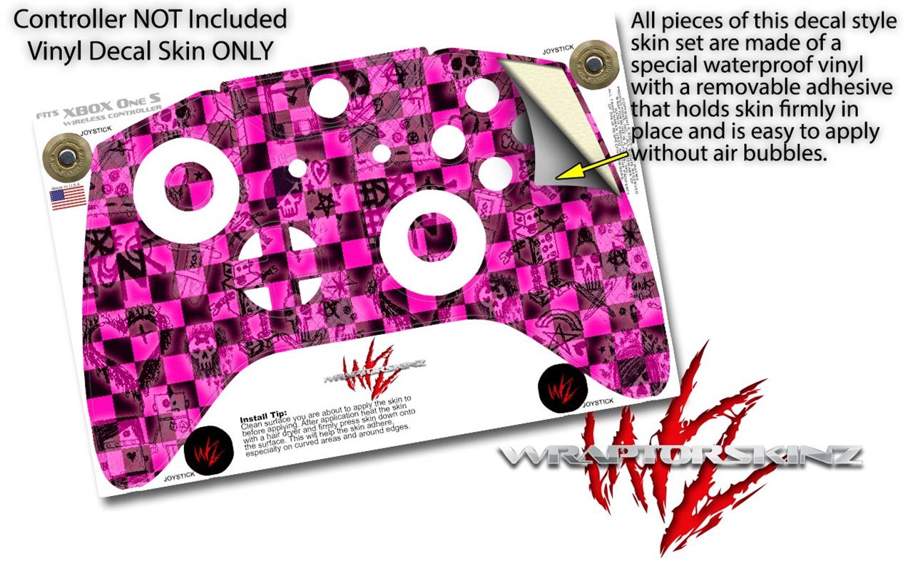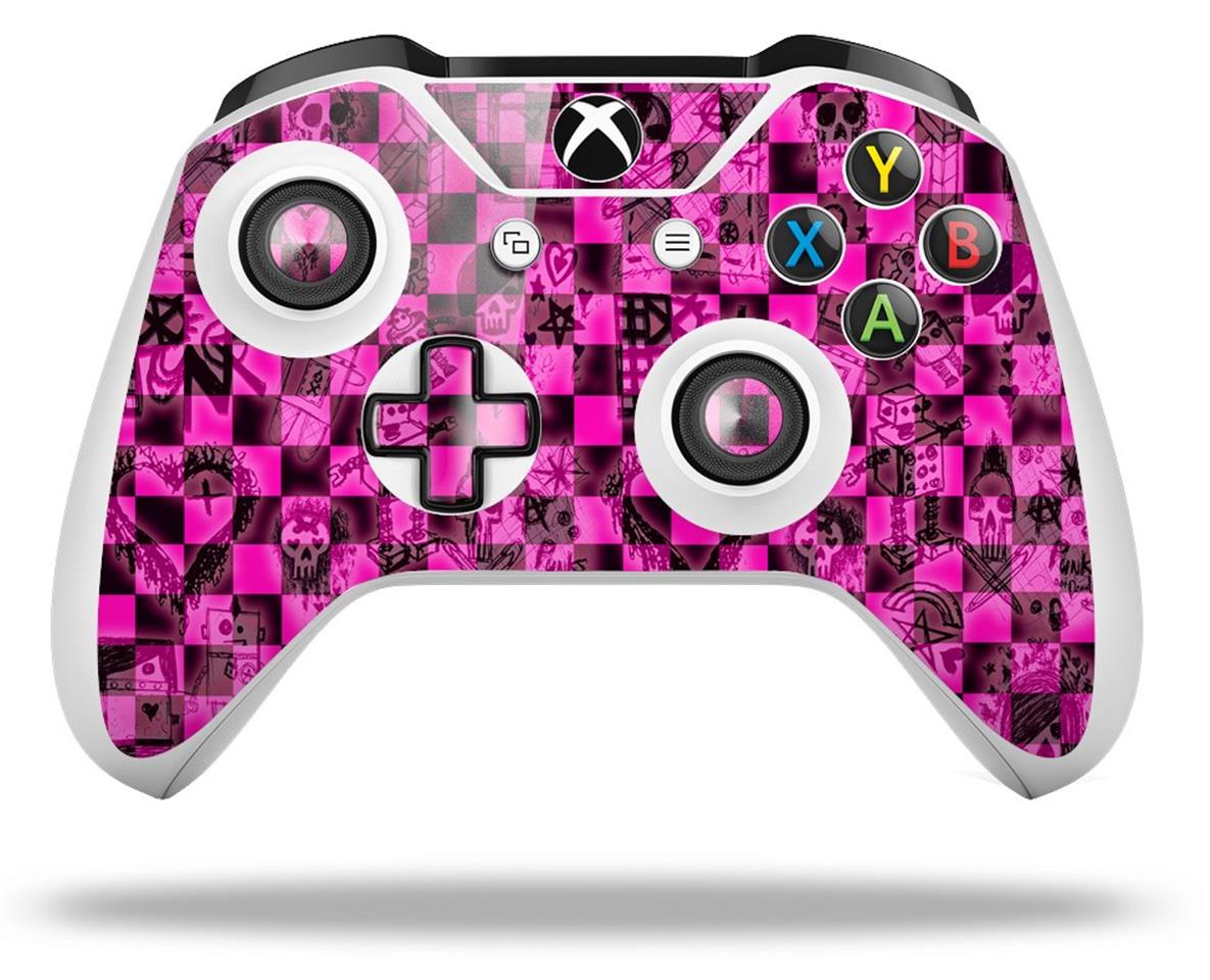 WraptorSkinz Decal Skin Wrap Set works with 2016 and newer XBOX One S / X Controller Pink Checkerboard Sketches (CONTROLLER NOT INCLUDED)