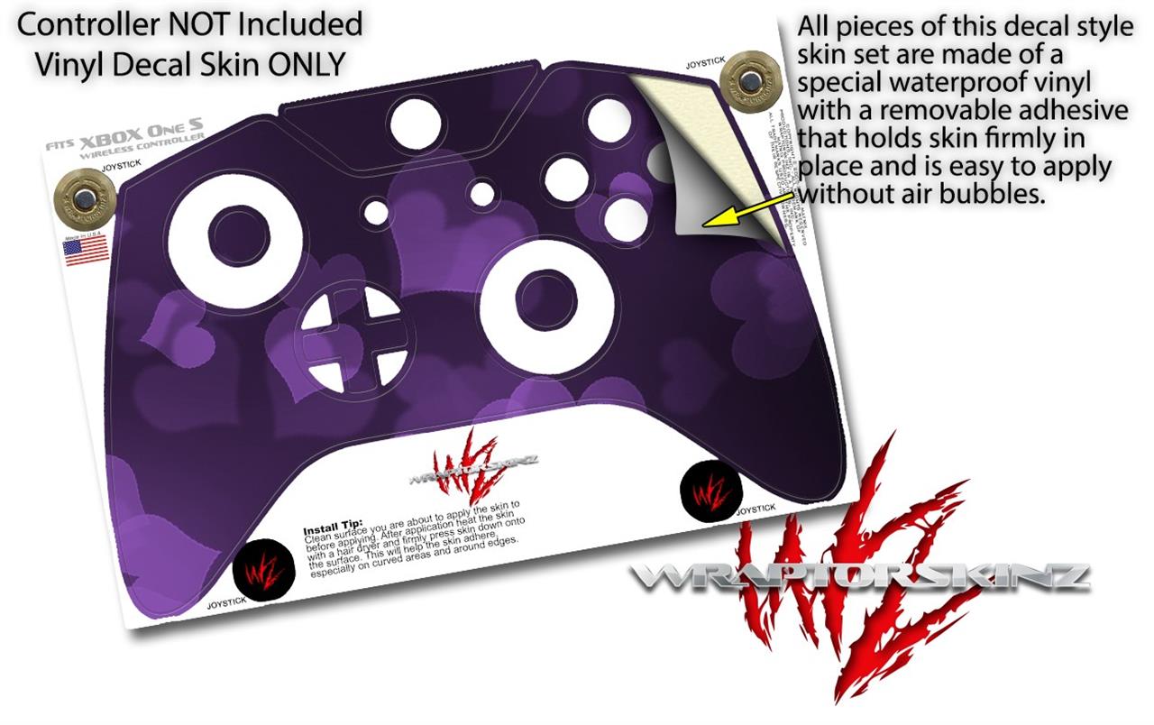 WraptorSkinz Decal Skin Wrap Set works with 2016 and newer XBOX One S / X Controller Bokeh Hearts Purple (CONTROLLER NOT INCLUDED)