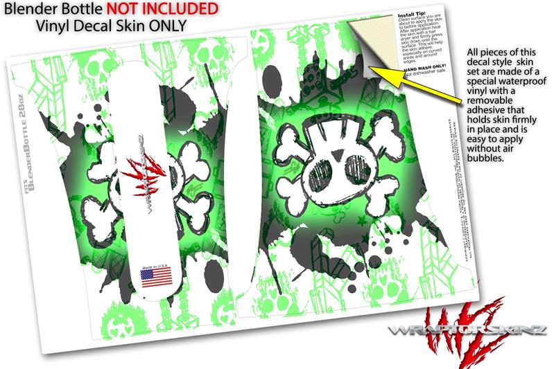 Decal Style Skin Wrap works with Blender Bottle 28oz Cartoon Skull Green (BOTTLE NOT INCLUDED)