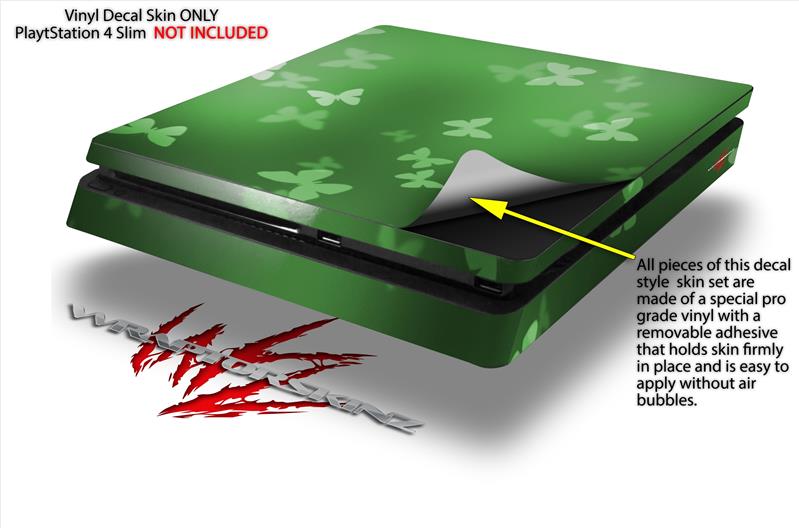 Vinyl Decal Skin Wrap compatible with Sony PlayStation 4 Slim Console Bokeh Butterflies Green (PS4 NOT INCLUDED)