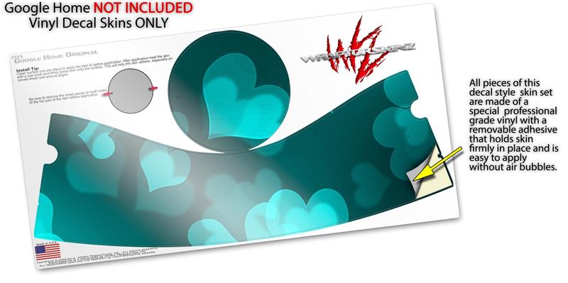 Decal Style Skin Wrap for Google Home Original - Bokeh Hearts Neon Teal (GOOGLE HOME NOT INCLUDED)