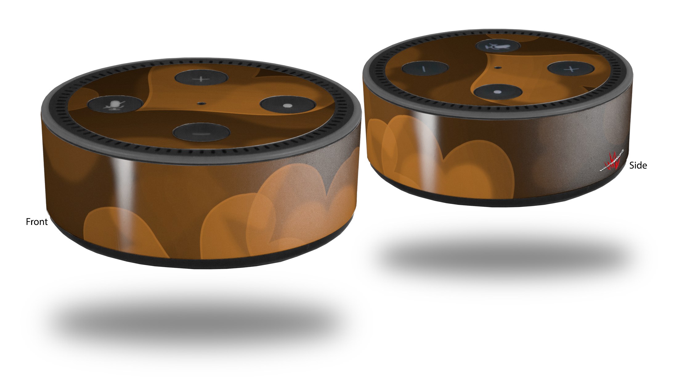 Skin Wrap Decal Set 2 Pack for Amazon Echo Dot 2 - Bokeh Hearts Orange (2nd Generation ONLY - Echo NOT INCLUDED)