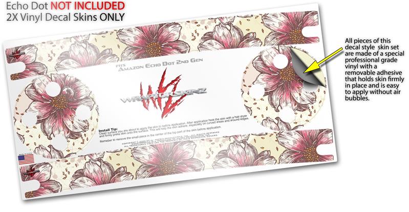 Skin Wrap Decal Set 2 Pack for Amazon Echo Dot 2 - Flowers Pattern 23 (2nd Generation ONLY - Echo NOT INCLUDED)