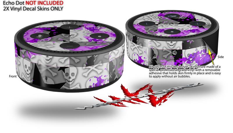 Skin Wrap Decal Set 2 Pack for Amazon Echo Dot 2 - Purple Checker Skull Splatter (2nd Generation ONLY - Echo NOT INCLUDED)