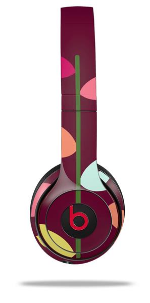 WraptorSkinz Skin Decal Wrap compatible with Beats Solo 2 and Solo 3 Wireless Headphones Plain Leaves On Burgundy (HEADPHONES NOT INCLUDED)