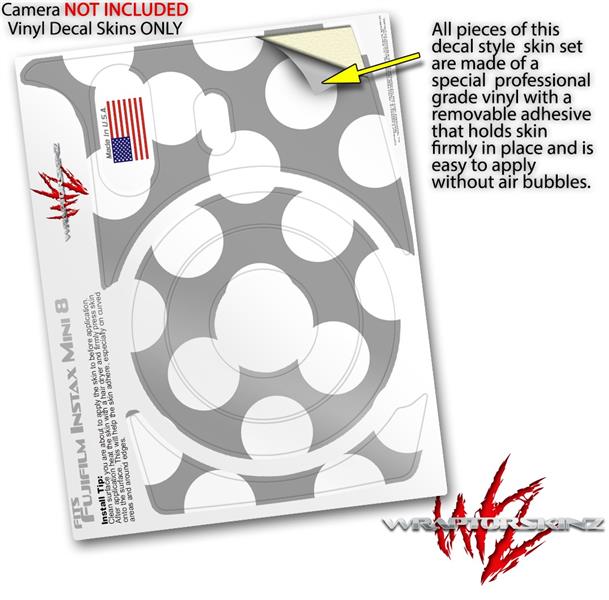 WraptorSkinz Skin Decal Wrap compatible with Fujifilm Mini 8 Camera Kearas Polka Dots Whtie On Gray (CAMERA NOT INCLUDED)