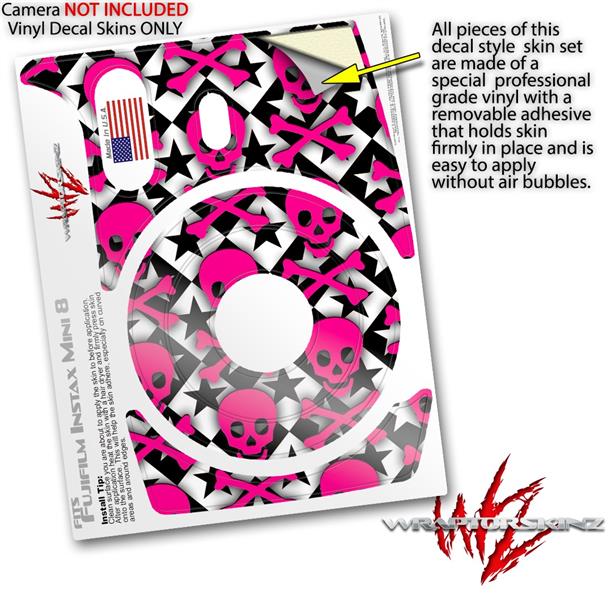 WraptorSkinz Skin Decal Wrap compatible with Fujifilm Mini 8 Camera Pink Skulls and Stars (CAMERA NOT INCLUDED)