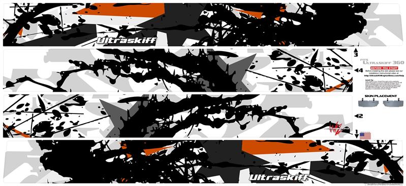 WraptoSkinz™ skin wraps for Ultraskiff 360 are printed using superb photo quality designs and vibrant colors printed with special fade resistant inks that last even in direct sun for years. WraptorSkinz are a composite of two layers of commercial grade materials. The bottom layer is a soft, flexible material with a special ultra-sticky adhesive designed to adhere to plastic body of the Ultraskiff. Next we print the bottom layer with UV protected, fade resistant inks that deliver superb photo quality designs in vibrant colors. Finally we bond a professional grade laminate over the entire skin adding a glossy protective finish.