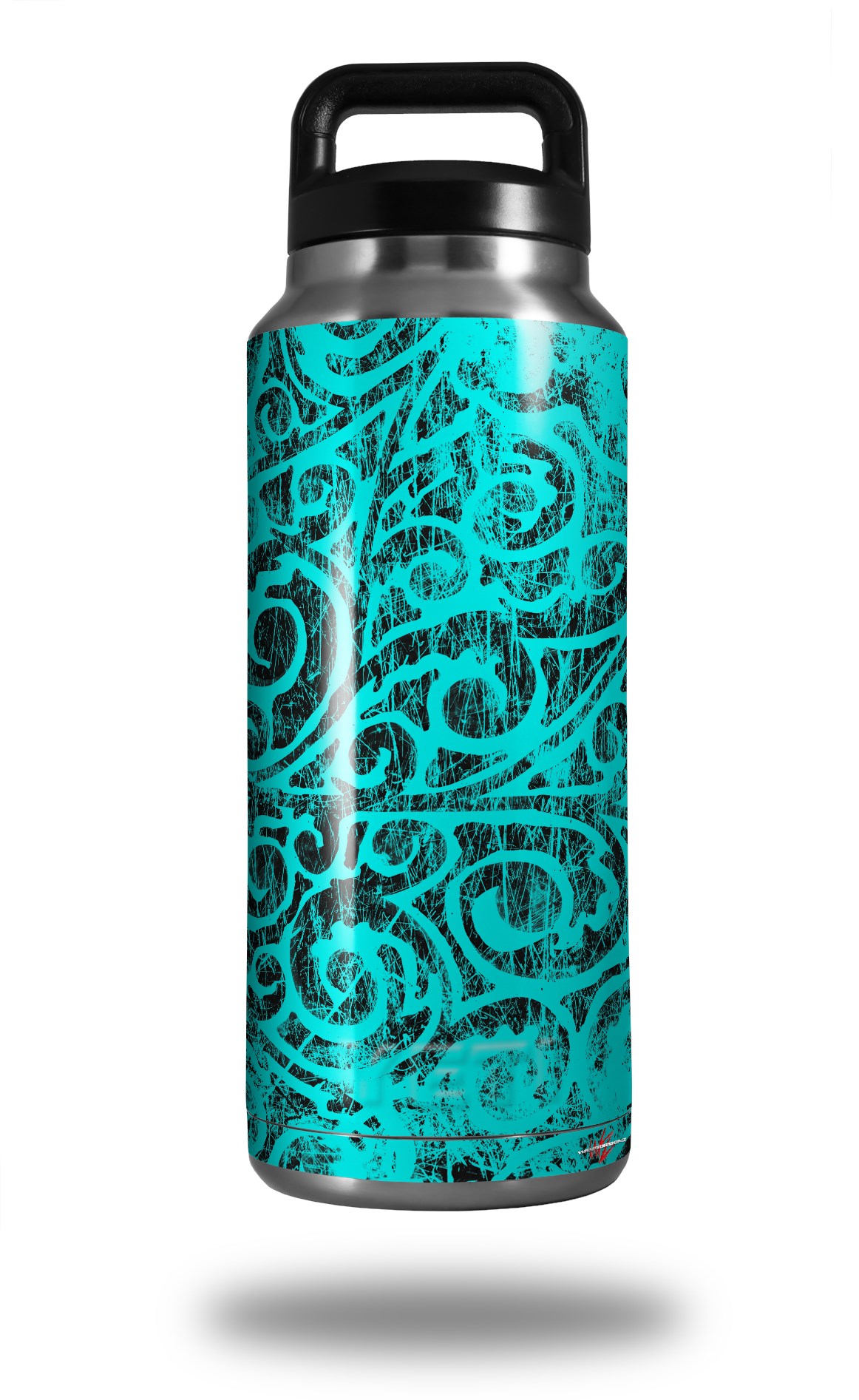 WraptorSkinz Skin Decal Wrap for Yeti Rambler Bottle 36oz Folder Doodles Neon Teal (YETI NOT INCLUDED)