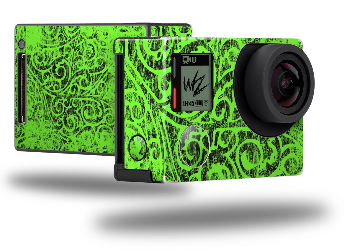 Folder Doodles Neon Green - Decal Style Skin fits GoPro Hero 4 Black Camera (GOPRO SOLD SEPARATELY)